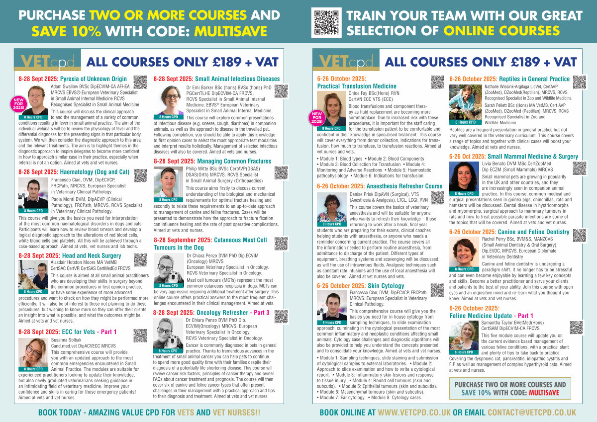 BOOK ONLINE AT WWW. VETCPD. CO. UK OR EMAIL CONTACT @ VETCPD. CO. UK