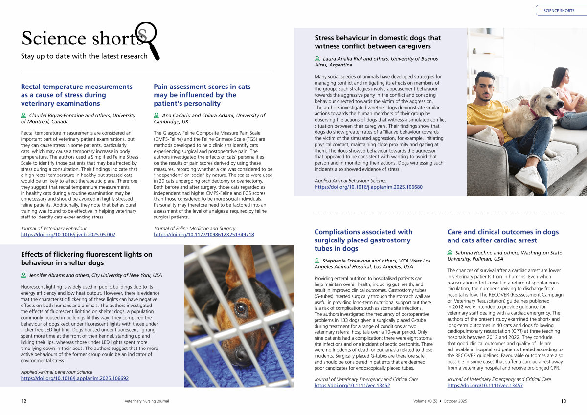 The chances of survival after a cardiac arrest are lower in veterinary patients than in humans. Even when resuscitation efforts result in a return of spontaneous circulation, the number surviving to discharge from hospital is low. The RECOVER( Reassessment Campaign on Veterinary Resuscitation) guidelines published in 2012 were intended to provide guidance for veterinary staff dealing with a cardiac emergency. The authors of the present study examined the short- and long-term outcomes in 40 cats and dogs following cardiopulmonary resuscitation( CPR) at three teaching hospitals between 2012 and 2022. They conclude that good clinical outcomes and quality of life are achievable in hospitalised patients treated according to the RECOVER guidelines. Favourable outcomes are also possible in some cases that suffer a cardiac arrest away from a veterinary hospital and receive prolonged CPR.