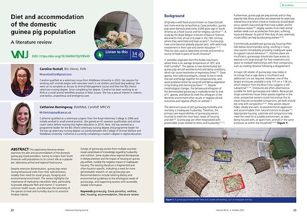 Keywords guinea pig, Cavia porcellus, welfare, diet, housing, accommodation, literature review