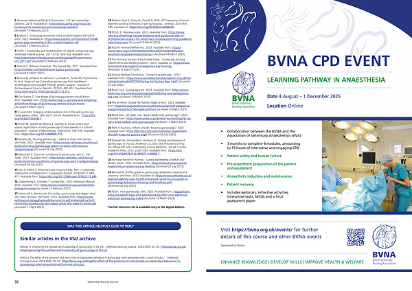 10 Dos Santos D. Five things all guinea pig owners should know. 2021. Available from: https:// www. bva. co. uk / news-and-blog / blogarticle / five-things-all-guinea-pig-owners-should-know / [ Accessed 9 March 2023 ].