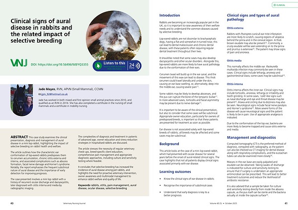 This article looks at the case of a mini lop-eared rabbit, which had presented with ocular disease for several years before the onset of aural-related clinical signs. The case highlights that not all patients display clinical signs associated primarily with ear disease.