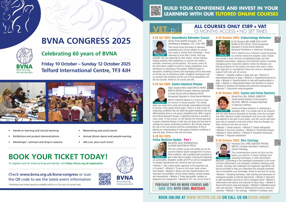Check www. bvna. org. uk / bvna-congress or scan the QR code to see the latest event information