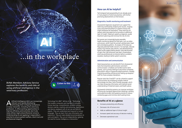 BVNA Members Advisory Service explores the benefits and risks of using artificial intelligence in the veterinary profession.