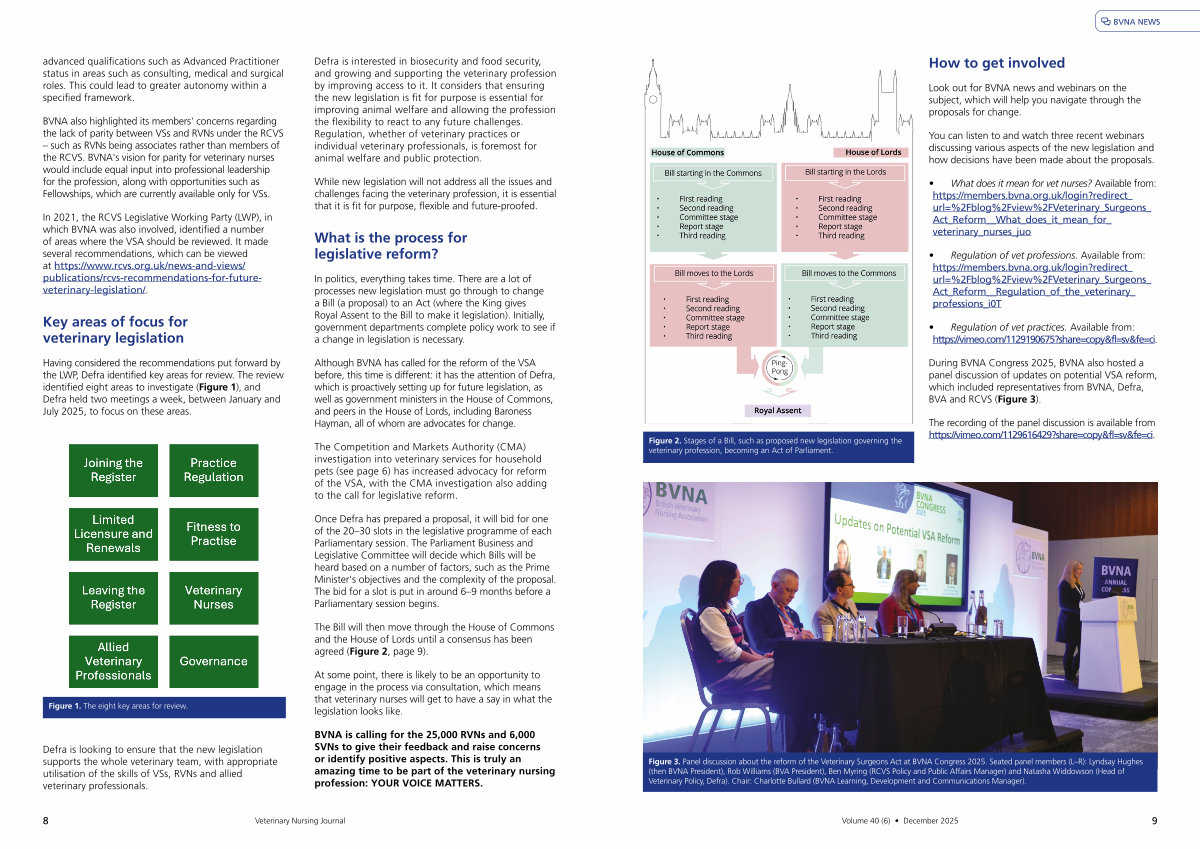 During BVNA Congress 2025, BVNA also hosted a panel discussion of updates on potential VSA reform, which included representatives from BVNA, Defra, BVA and RCVS( Figure 3).