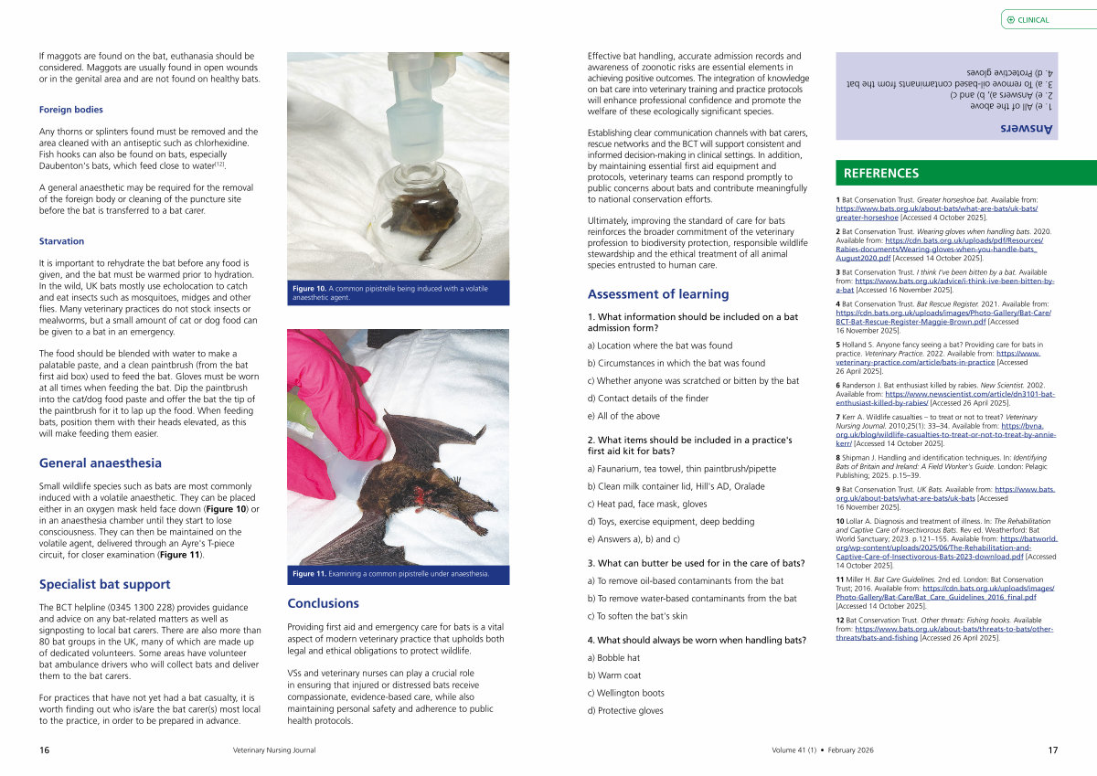 VSs and veterinary nurses can play a crucial role in ensuring that injured or distressed bats receive compassionate, evidence-based care, while also maintaining personal safety and adherence to public health protocols.