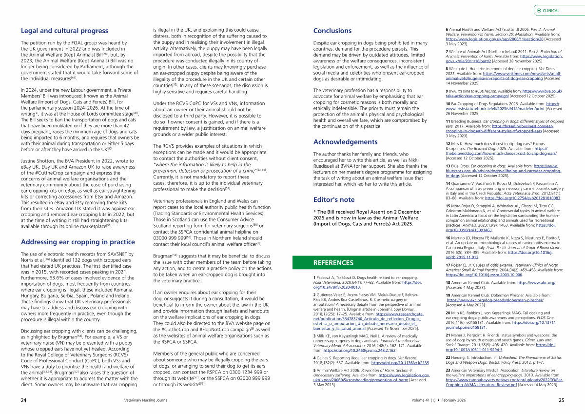 8 Westgate J. Huge rise in reports of dog ear cropping. Vet Times. 2022. Available from: https:// www. vettimes. com / news / vets / smallanimal-vets / huge-rise-in-reports-of-dog-ear-cropping [ Accessed 14 November 2025 ].