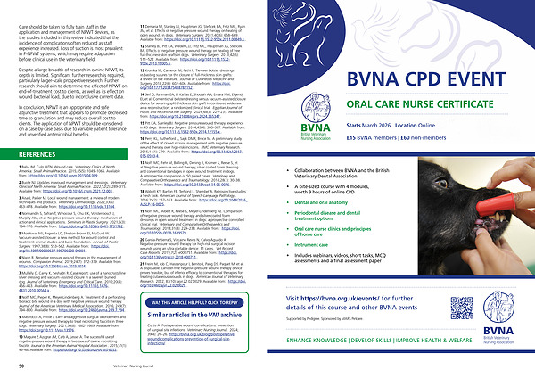 6 Nixon R. Negative pressure wound therapy in the management of wounds. Companion Animal. 2019; 24( 7): 372 – 379. Available from: https:// doi. org / 10.12968 / coan. 2019.0014.