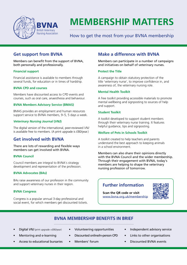 Members can also share their opinions directly with the BVNA Council and the wider membership. Through their engagement with BVNA, today ' s members are helping to shape the veterinary nursing profession of tomorrow.