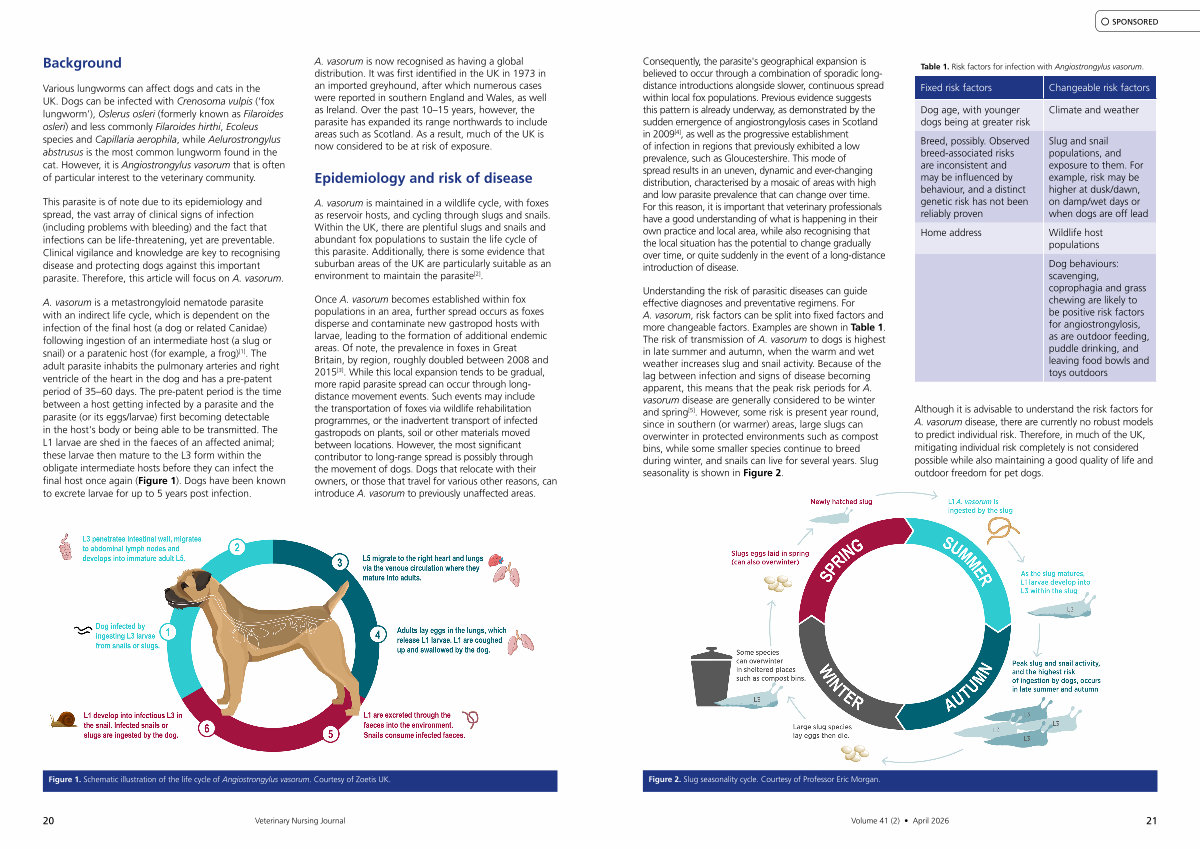 Although it is advisable to understand the risk factors for A. vasorum disease, there are currently no robust models to predict individual risk. Therefore, in much of the UK, mitigating individual risk completely is not considered possible while also maintaining a good quality of life and outdoor freedom for pet dogs.