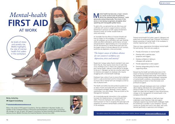 As levels of stress and anxiety rise , BMAS highlights the role of mentalhealth first aiders in the workplace .