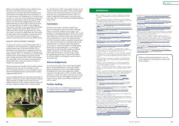 Baker , P . J ., Thompson , R . & Grogan , A . ( 2018 ) Survival rates of cat-attacked birds admitted to RSPCA wildlife centres in the UK : implications for cat owners and wildlife rehabilitators . Animal Welfare . 27 ( 4 ), 305 – 318 .