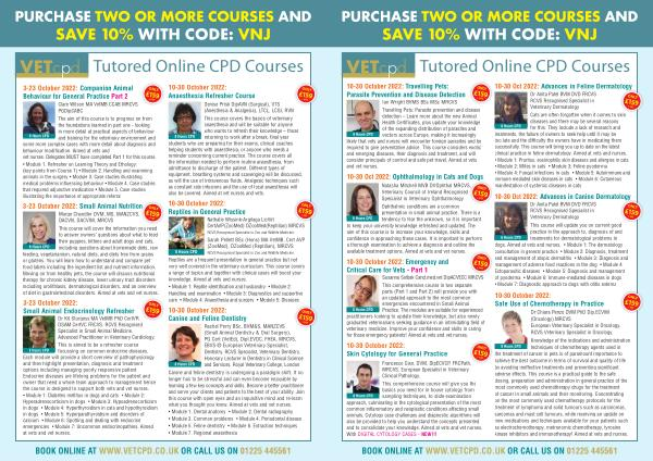 BOOK ONLINE AT WWW . VETCPD . CO . UK OR CALL US ON 01225 445561